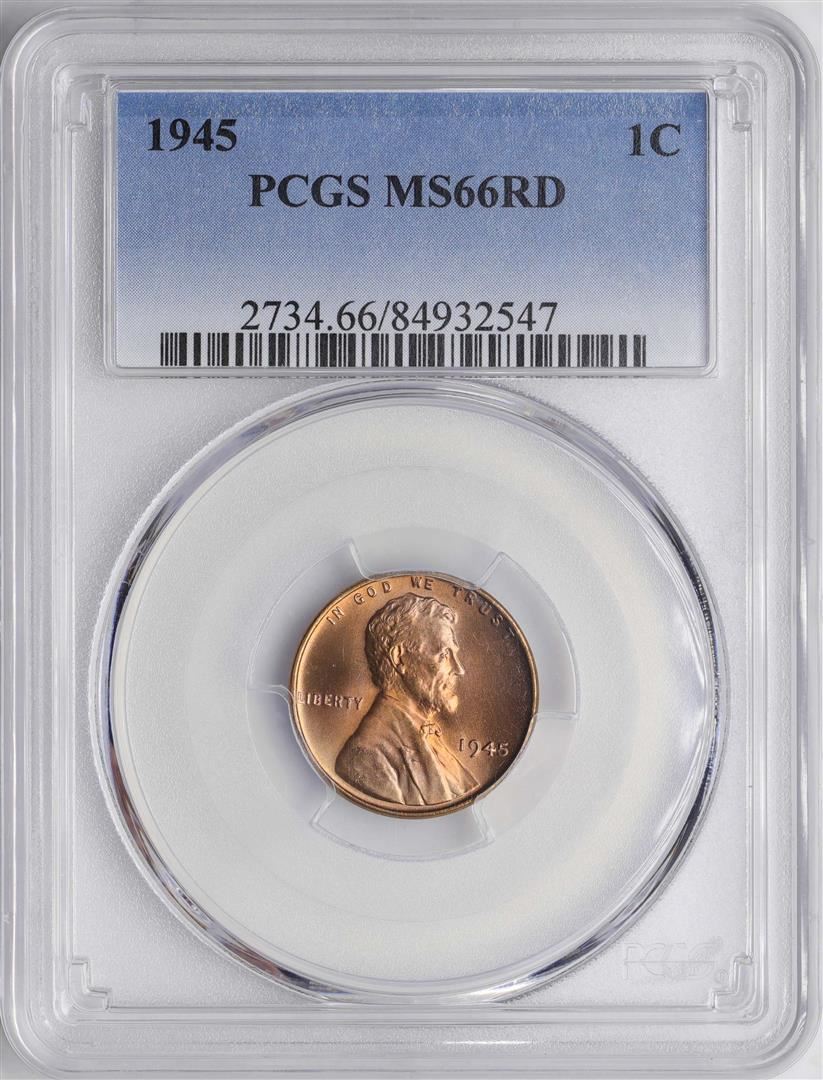 One 1945 Lincoln Wheat Cent Coin PCGS MS66RD PREMIUM TONING. PCGS Graded.