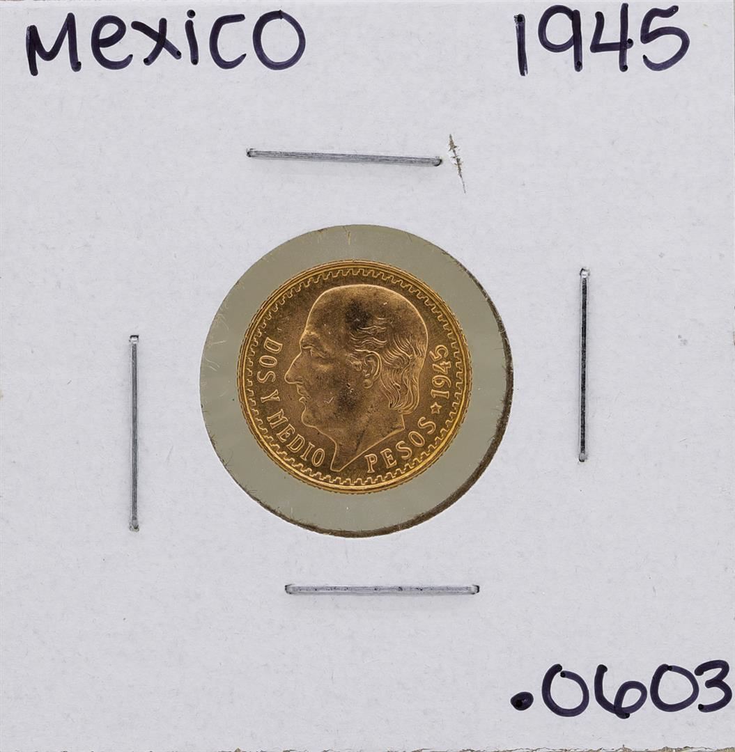 One 1945 Mexico 2 1/2 Pesos Gold Coin.