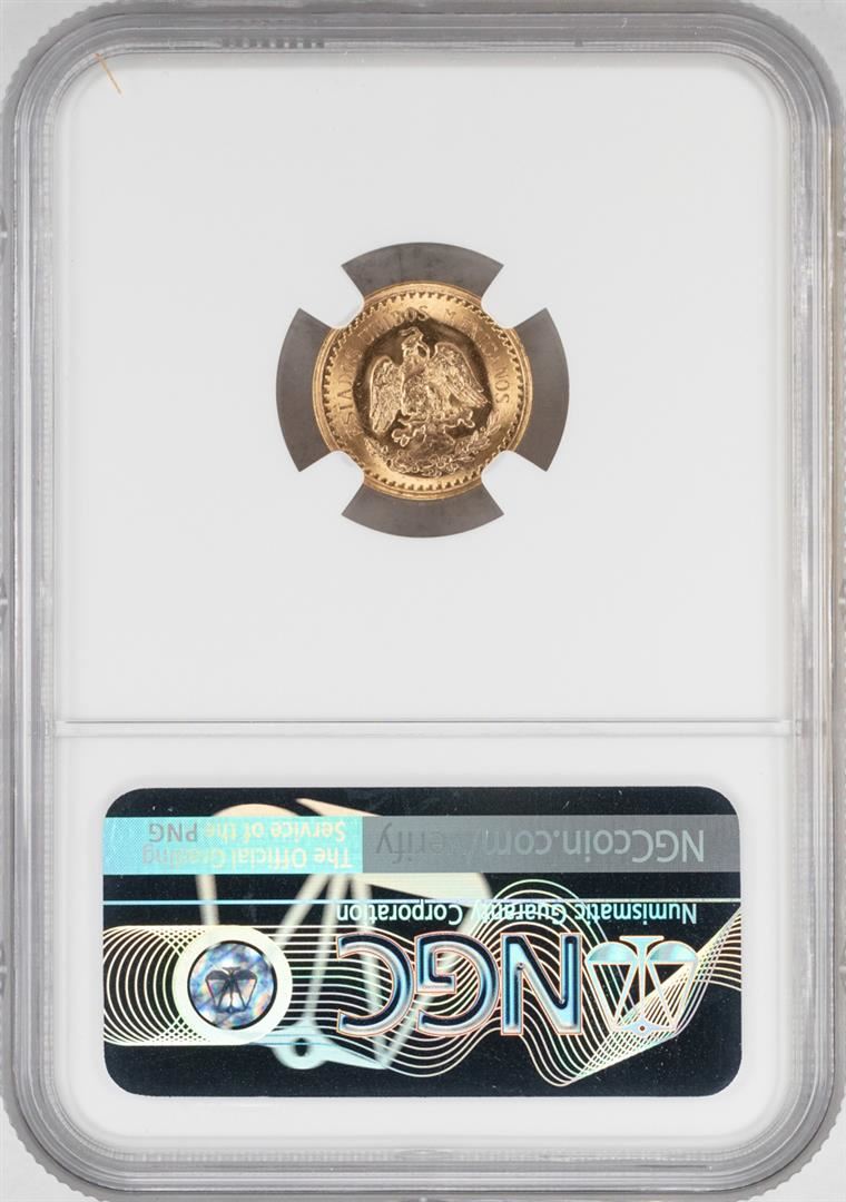 One 1945 Mexico 2.5 Pesos Gold Coin NGC MS65. NGC Certified.