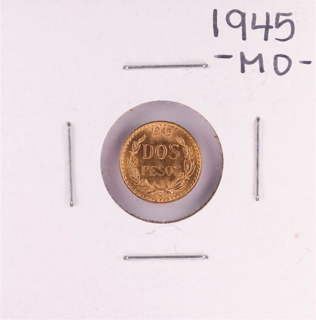 One 1945 Mexico Dos Pesos Gold Coin.