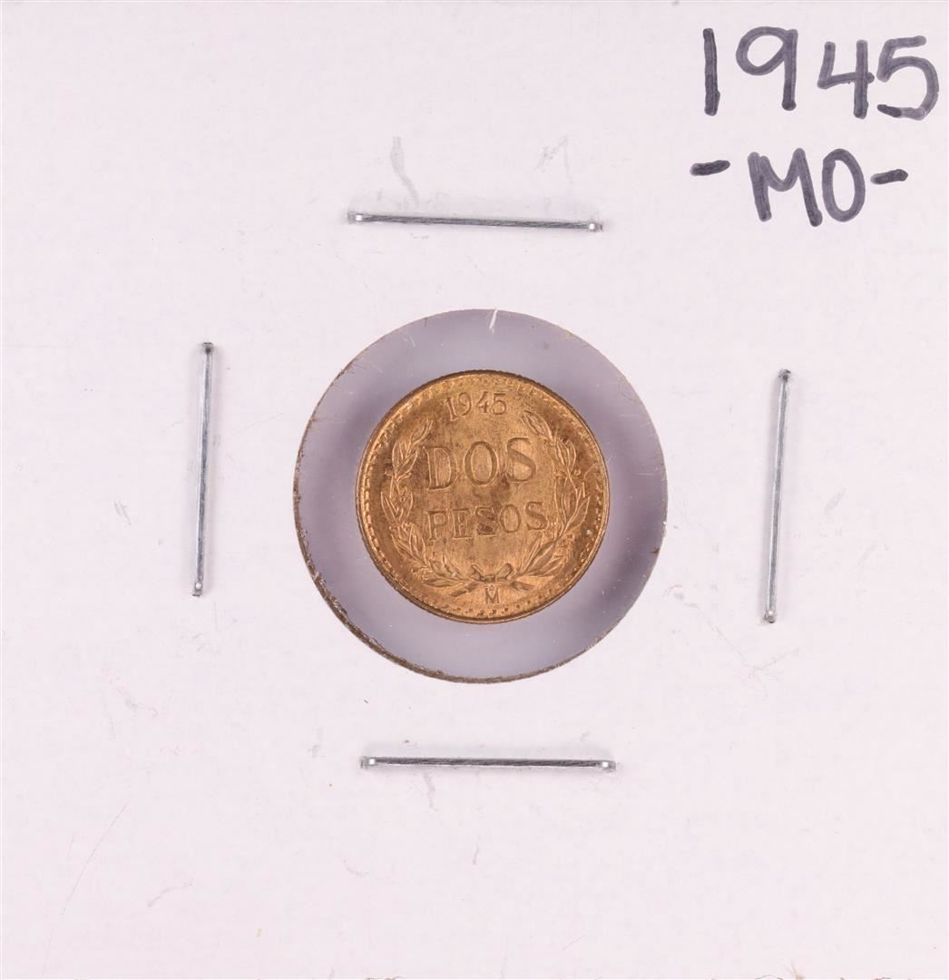 One 1945 Mexico Dos Pesos Gold Coin.