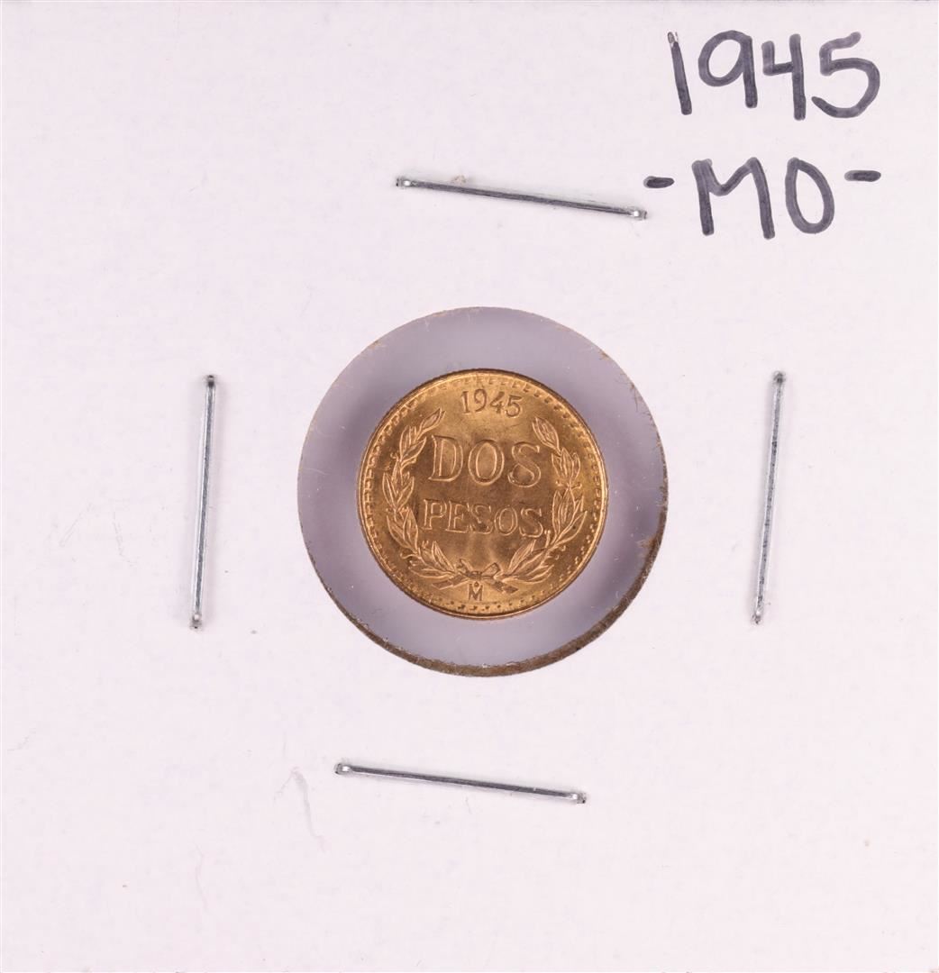 One 1945 Mexico Dos Pesos Gold Coin.