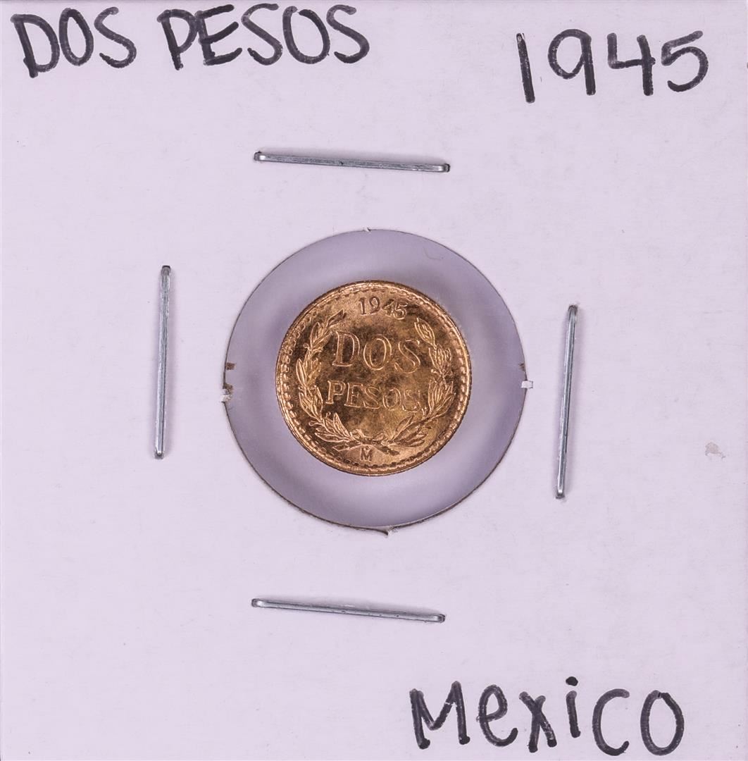 One 1945 Mexico Dos Pesos Gold Coin.