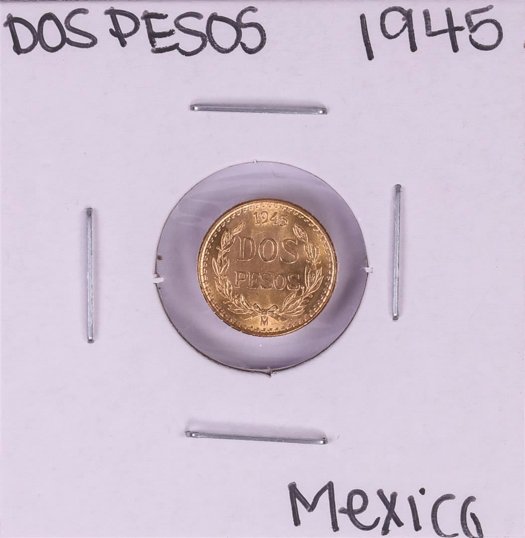 One 1945 Mexico Dos Pesos Gold Coin.
