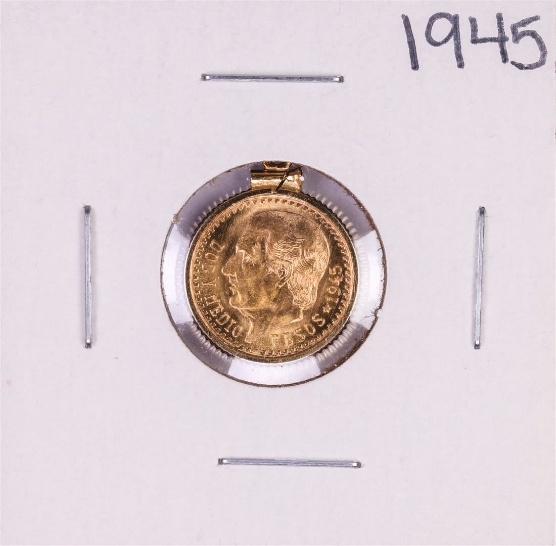 One 1945 Mexico Dos Y Medio Pesos Gold Coin Pendant.