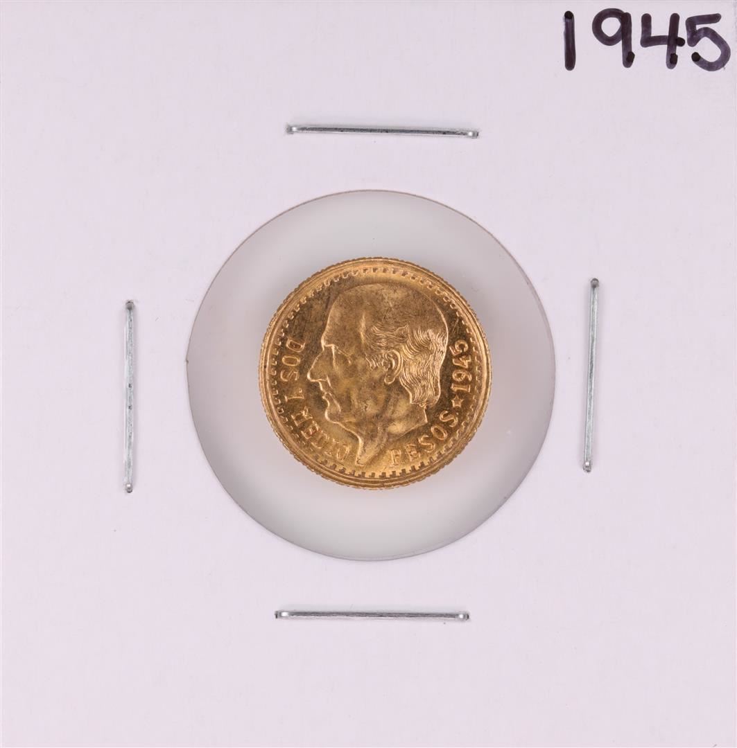 One 1945 Mexico Dos Y Medio Pesos Gold Coin.
