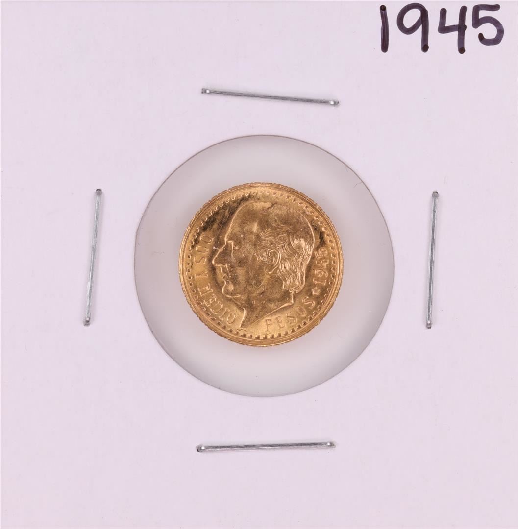 One 1945 Mexico Dos Y Medio Pesos Gold Coin.