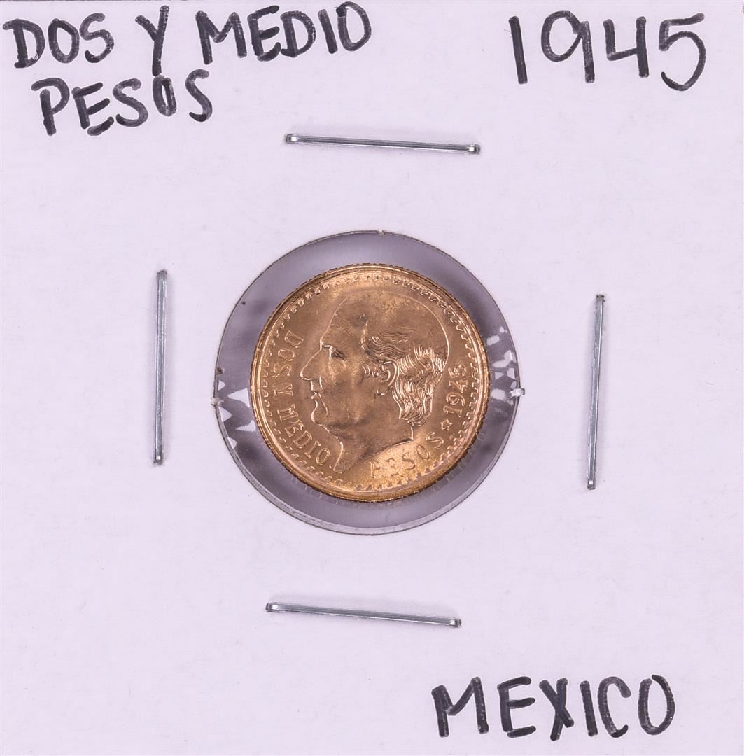 One 1945 Mexico Dos Y Medio Pesos Gold Coin.