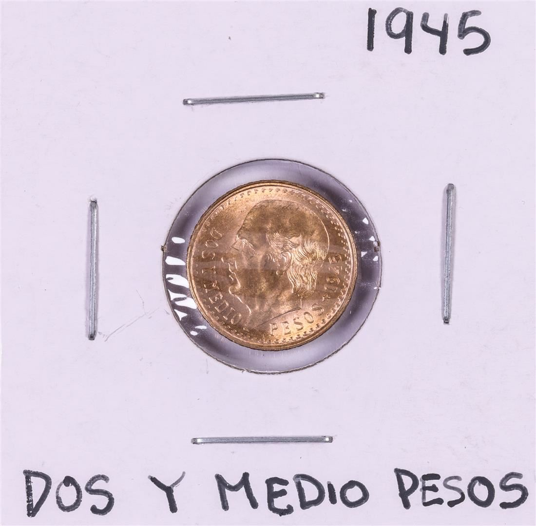 One 1945 Mexico Dos Y Medio Pesos Gold Coin.