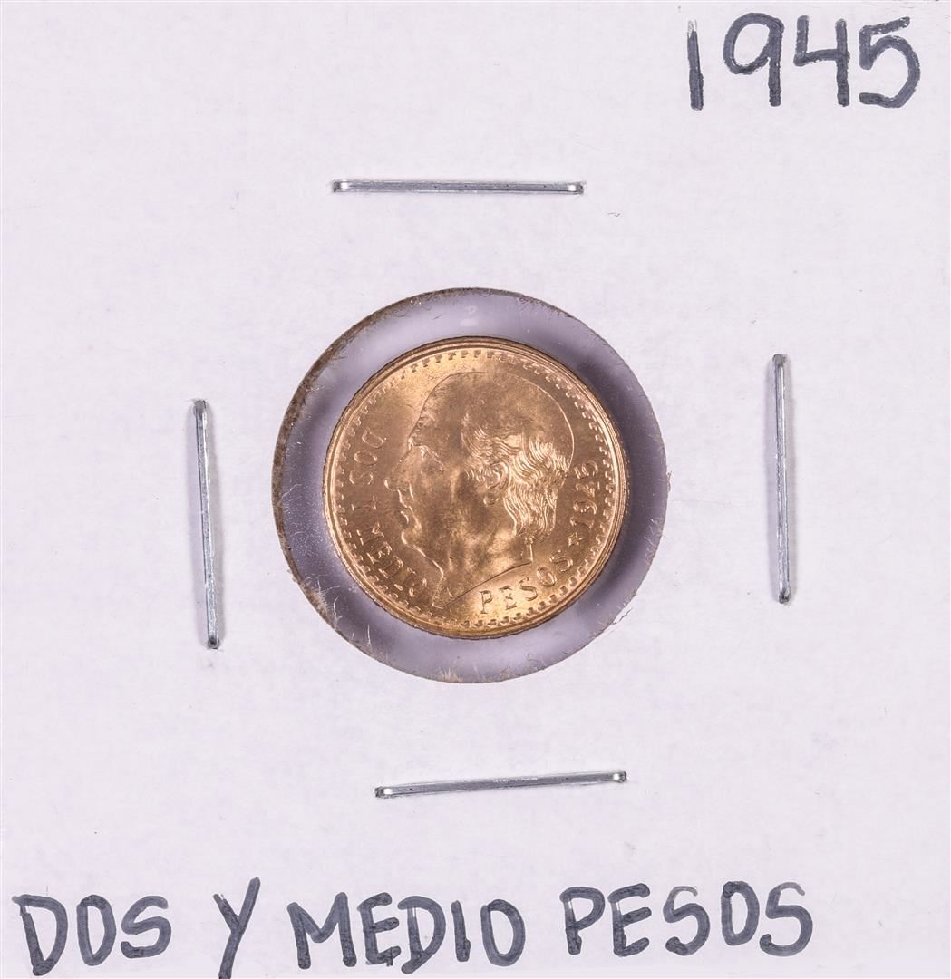 One 1945 Mexico Dos Y Medio Pesos Gold Coin.