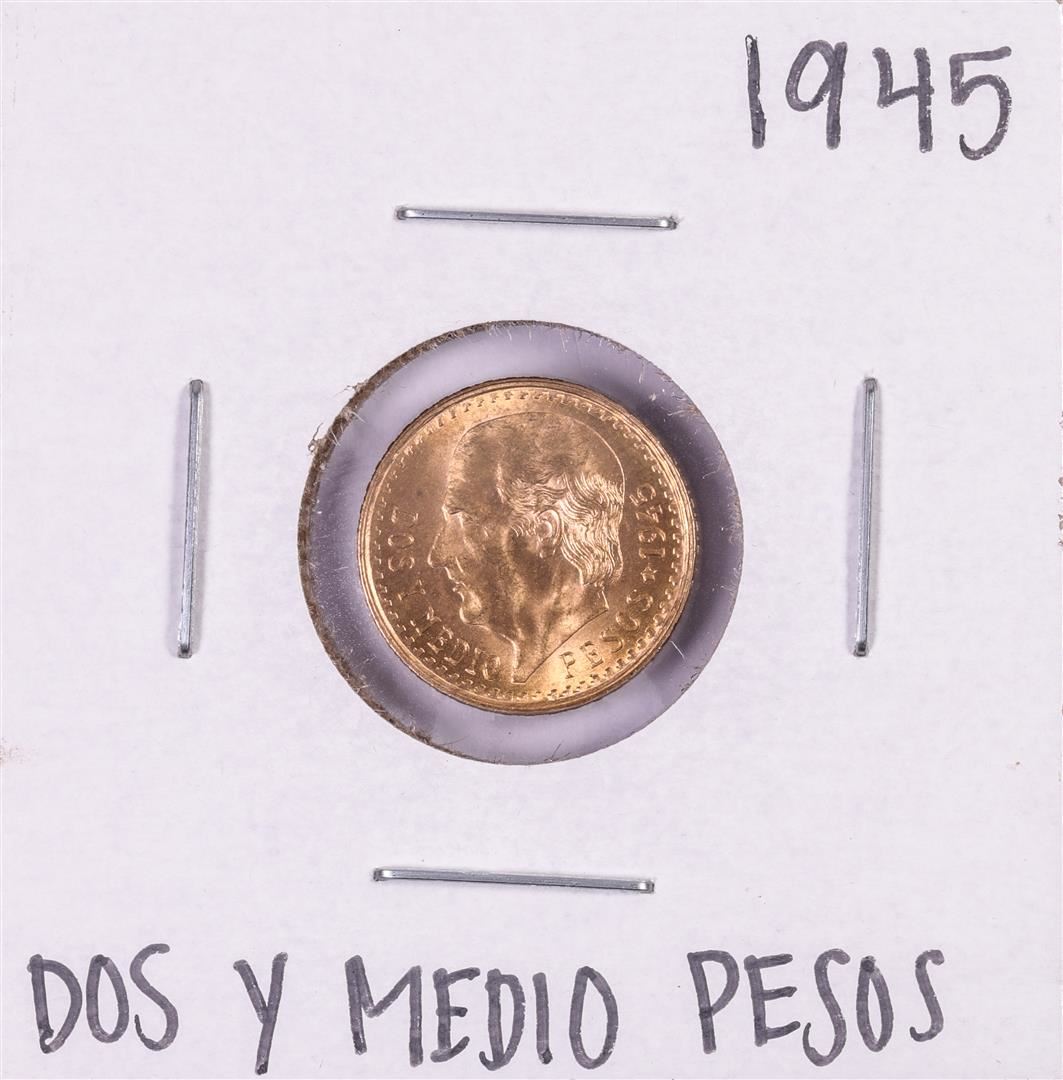 One 1945 Mexico Dos Y Medio Pesos Gold Coin.