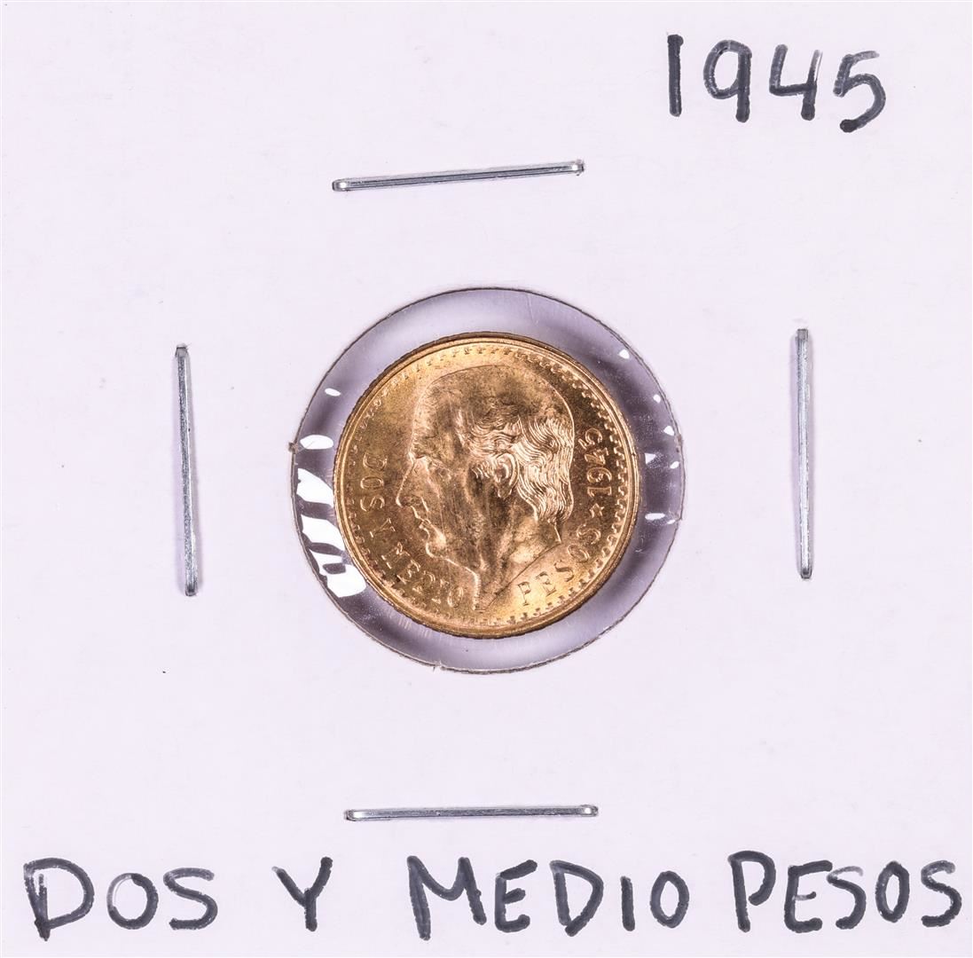 One 1945 Mexico Dos Y Medio Pesos Gold Coin.