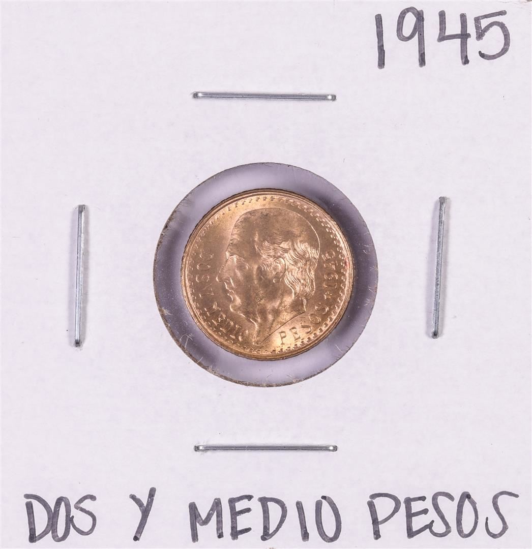 One 1945 Mexico Dos Y Medio Pesos Gold Coin.