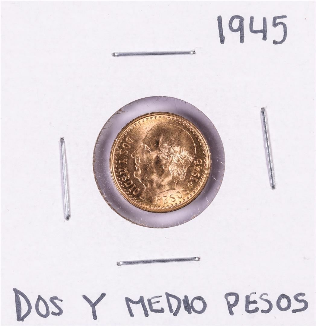 One 1945 Mexico Dos Y Medio Pesos Gold Coin.
