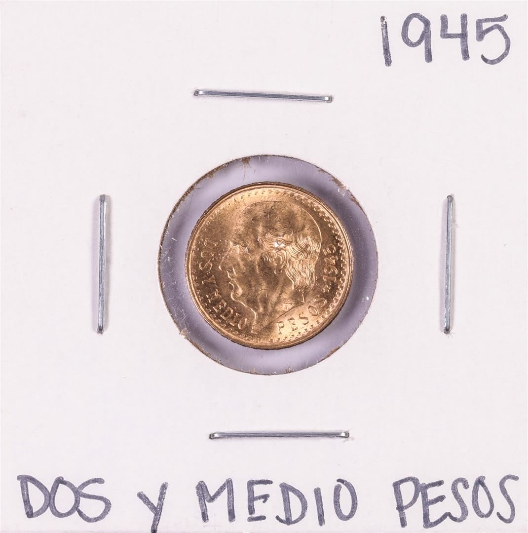 One 1945 Mexico Dos Y Medio Pesos Gold Coin.