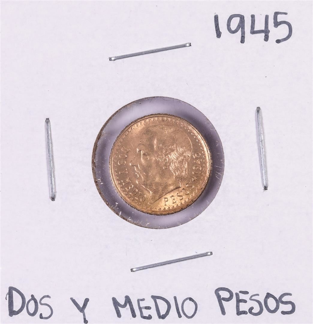 One 1945 Mexico Dos Y Medio Pesos Gold Coin.