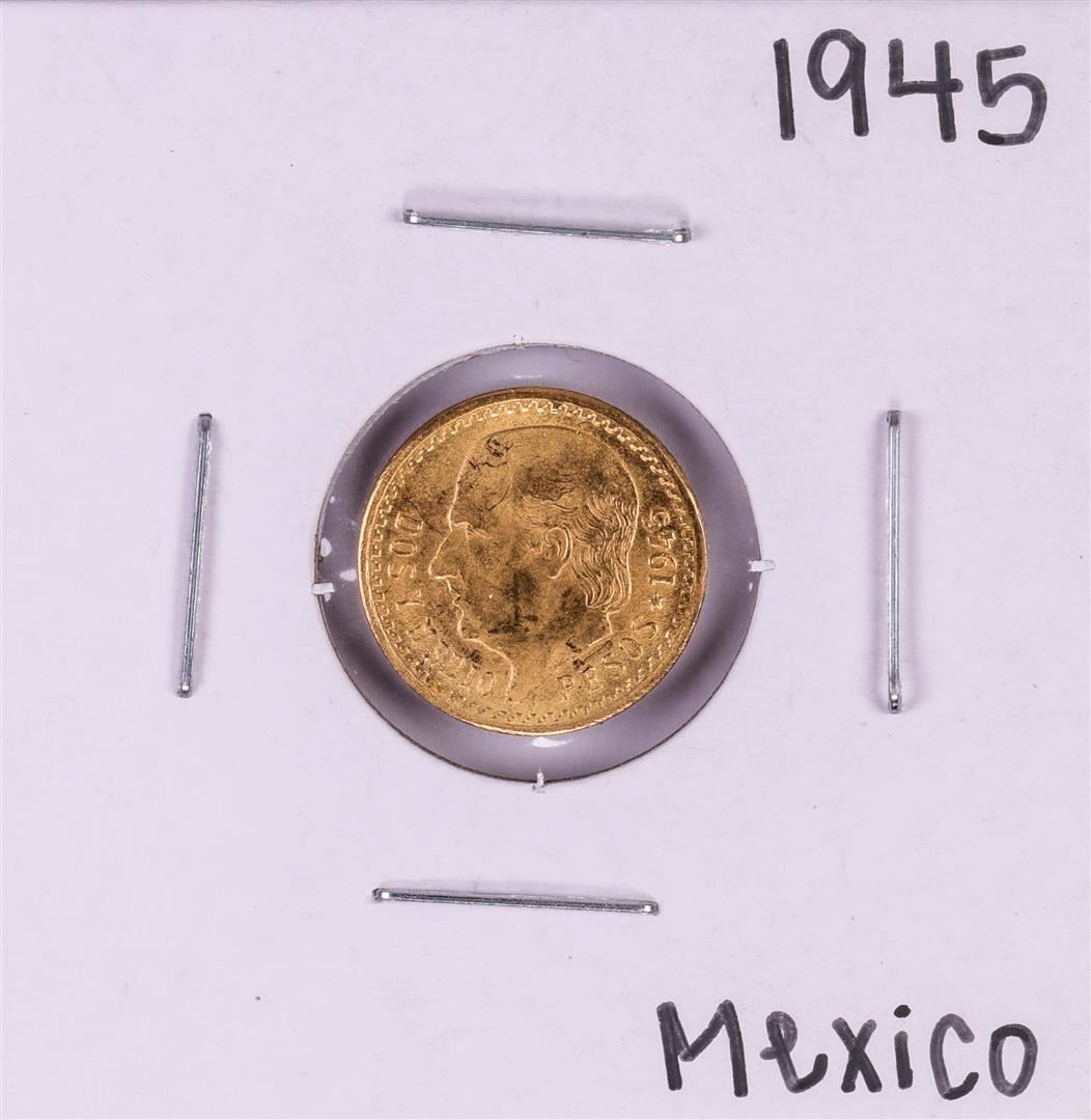 One 1945 Mexico Dos Y Medio Pesos Gold Coin.