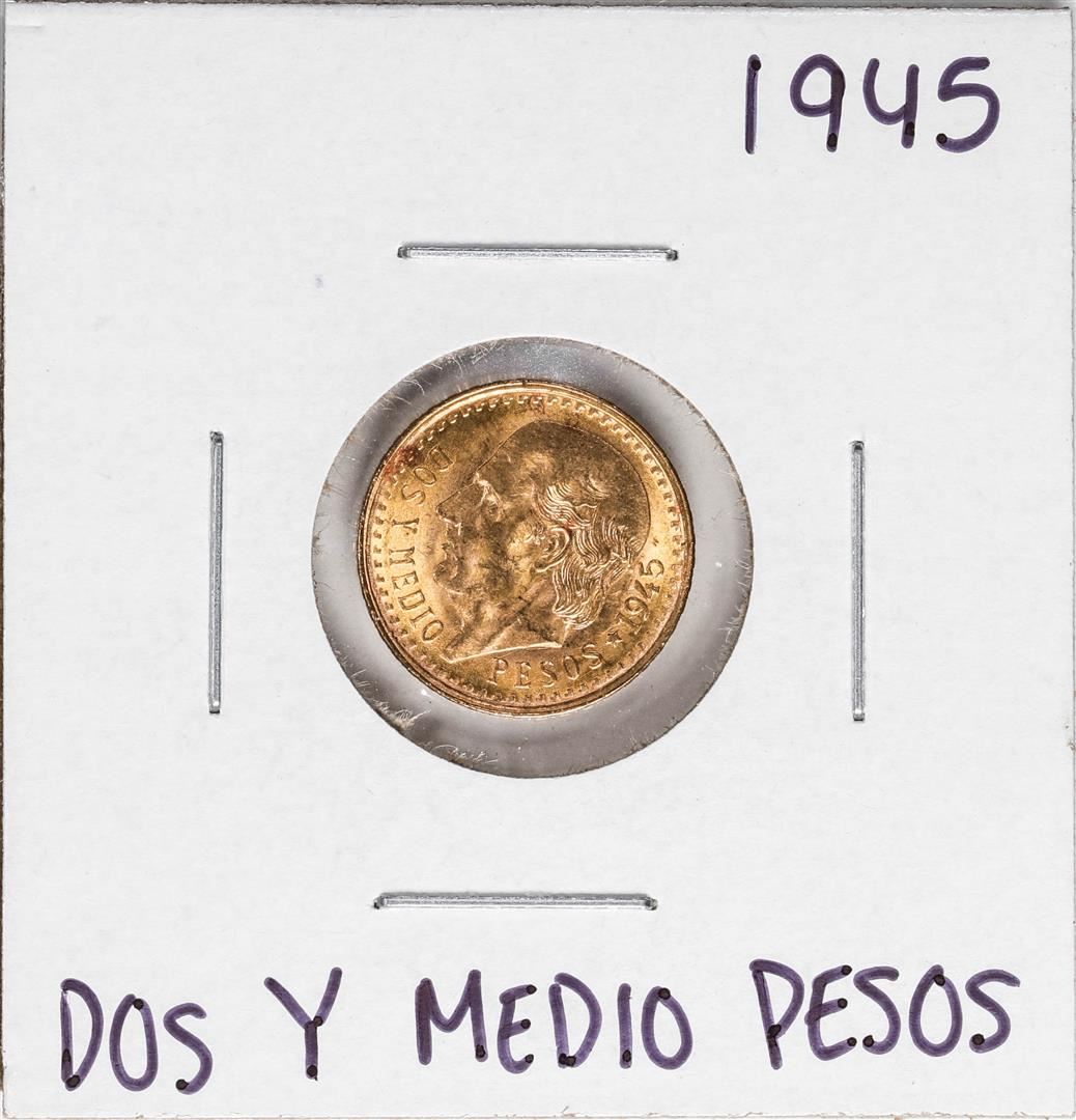 One 1945 Mexico Dos Y Medio Pesos Gold Coin.