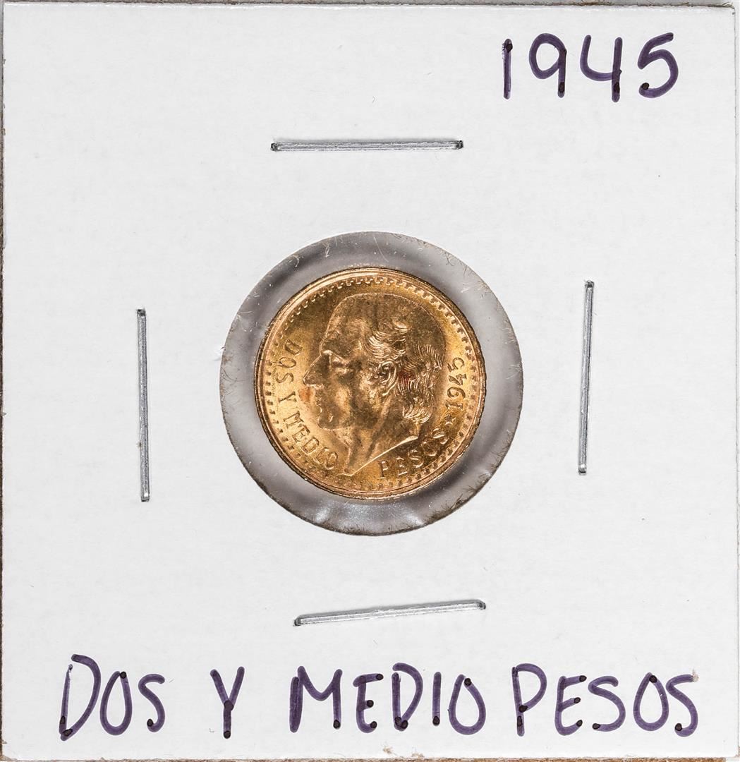 One 1945 Mexico Dos Y Medio Pesos Gold Coin.