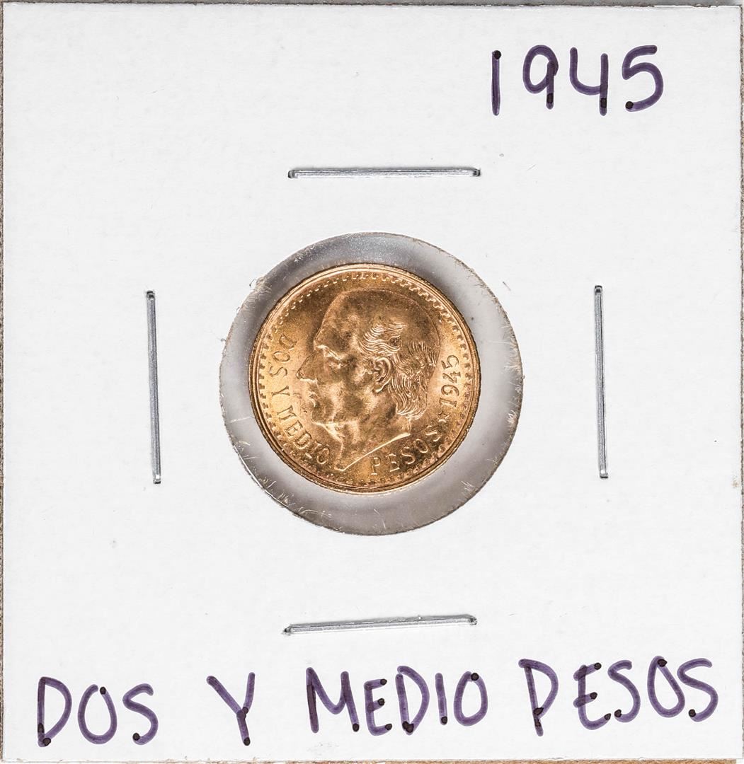 One 1945 Mexico Dos Y Medio Pesos Gold Coin.