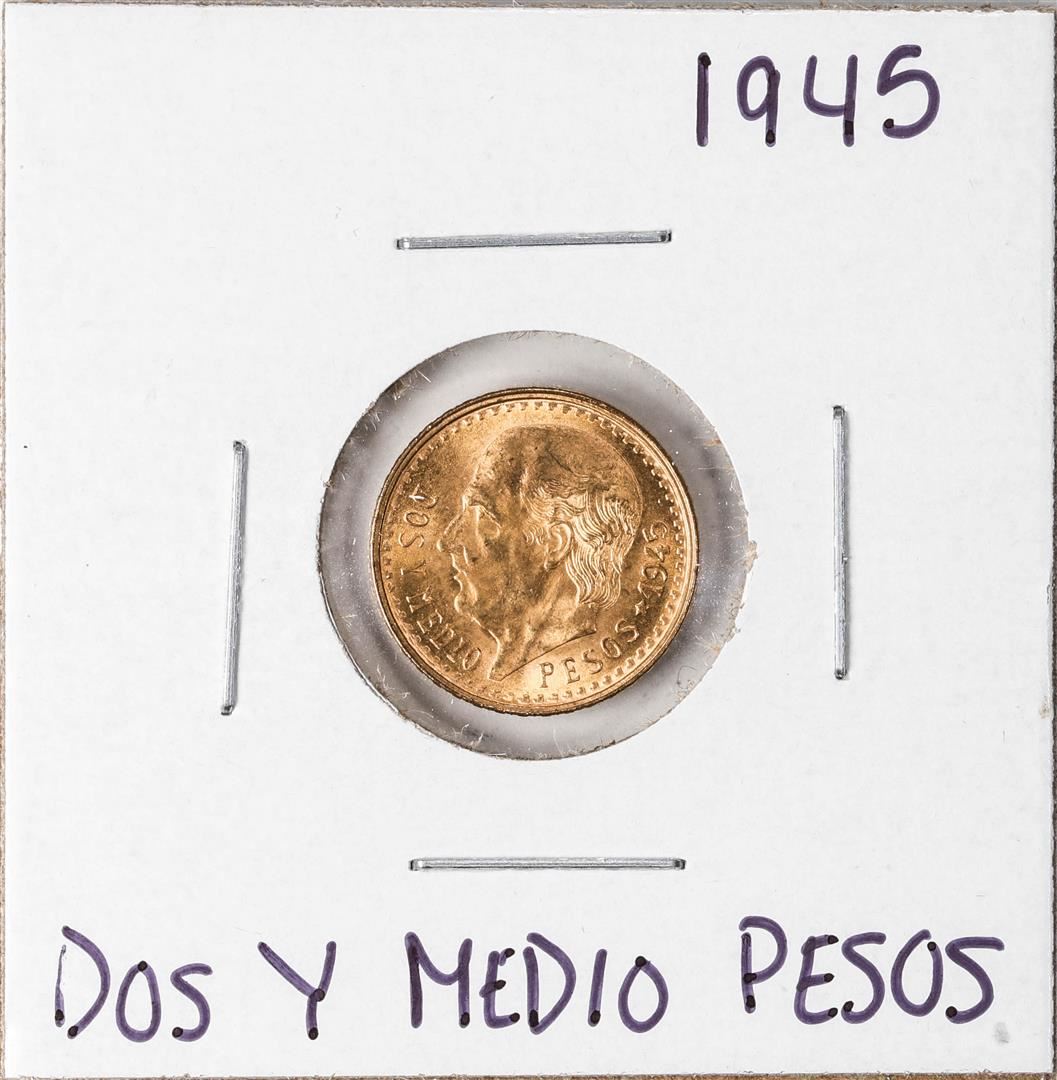 One 1945 Mexico Dos Y Medio Pesos Gold Coin.