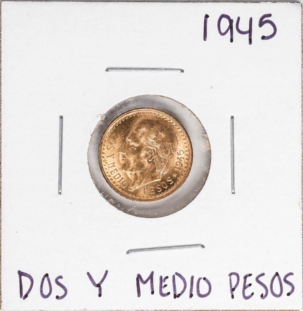 One 1945 Mexico Dos Y Medio Pesos Gold Coin.