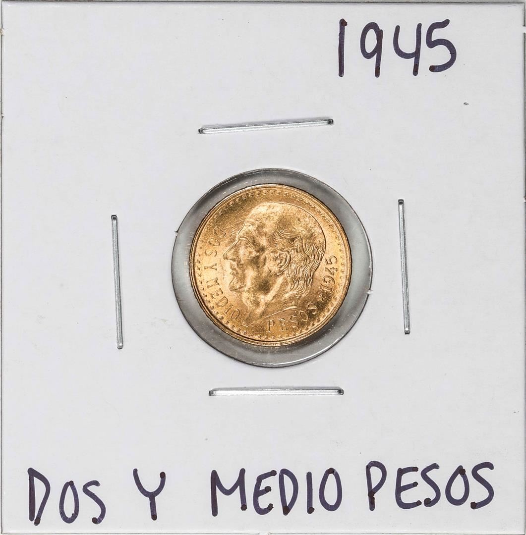 One 1945 Mexico Dos Y Medio Pesos Gold Coin.
