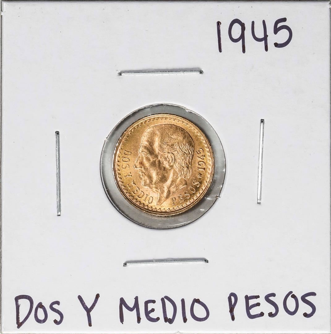 One 1945 Mexico Dos Y Medio Pesos Gold Coin.
