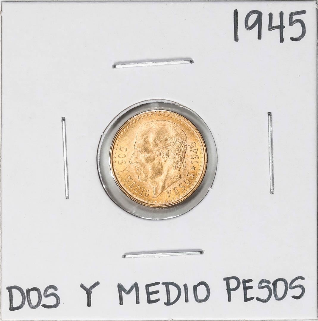 One 1945 Mexico Dos Y Medio Pesos Gold Coin.