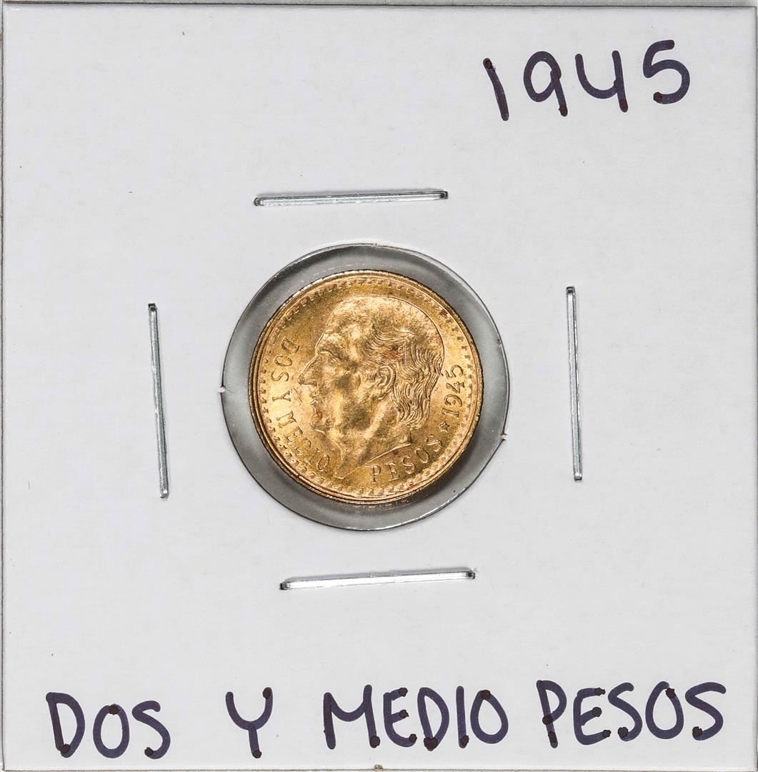 One 1945 Mexico Dos Y Medio Pesos Gold Coin.
