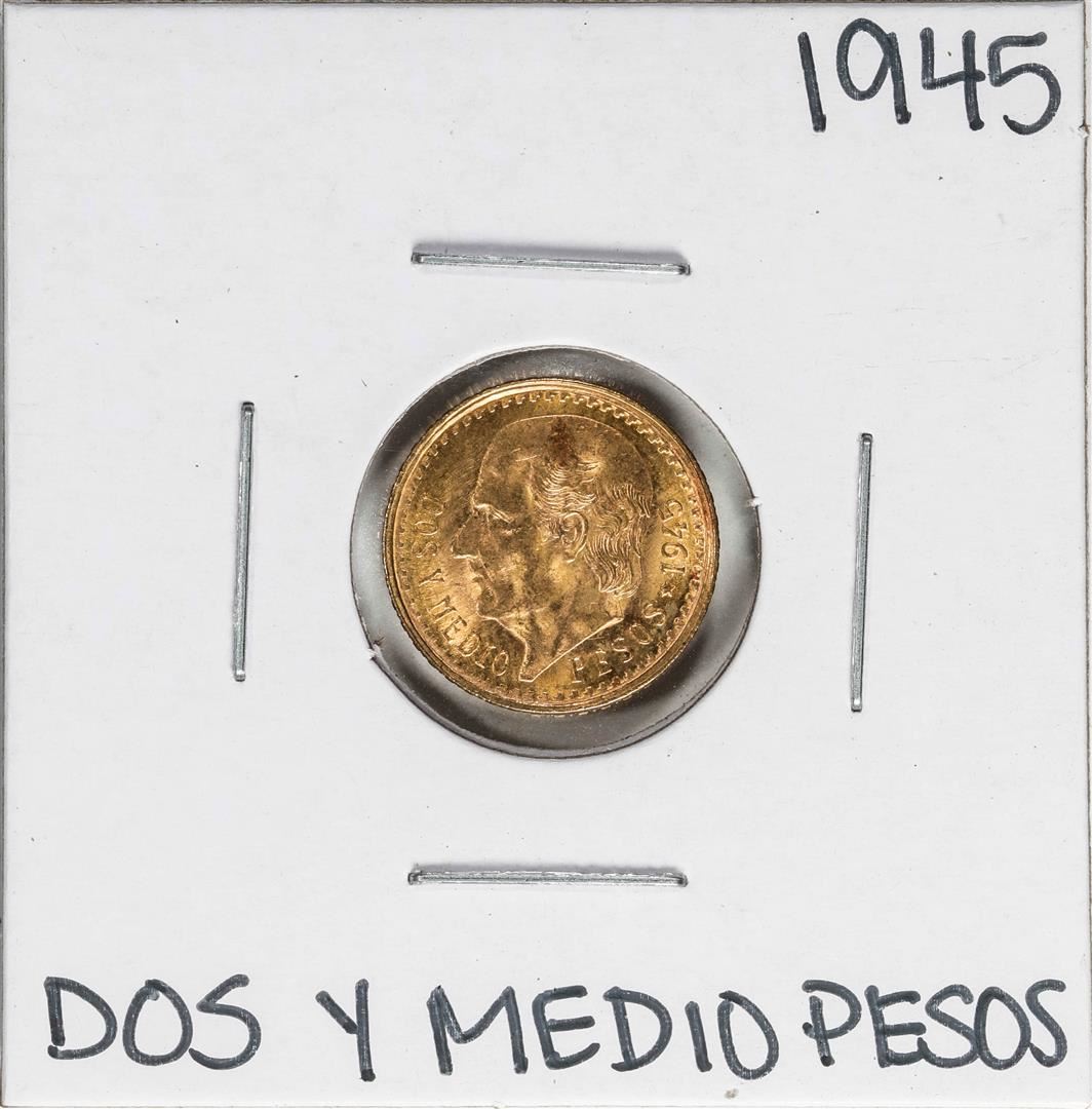 One 1945 Mexico Dos Y Medio Pesos Gold Coin.