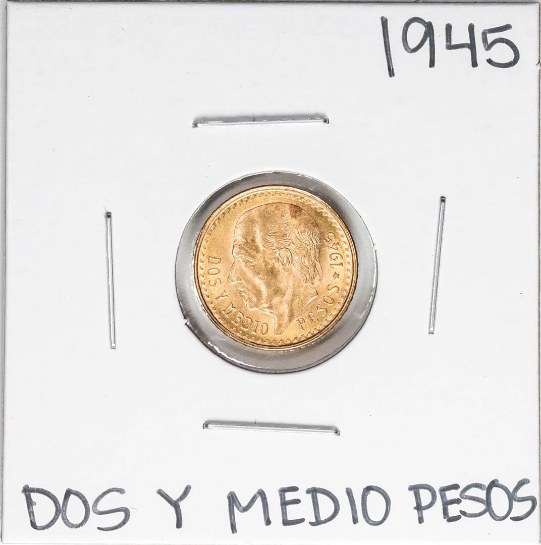 One 1945 Mexico Dos Y Medio Pesos Gold Coin.