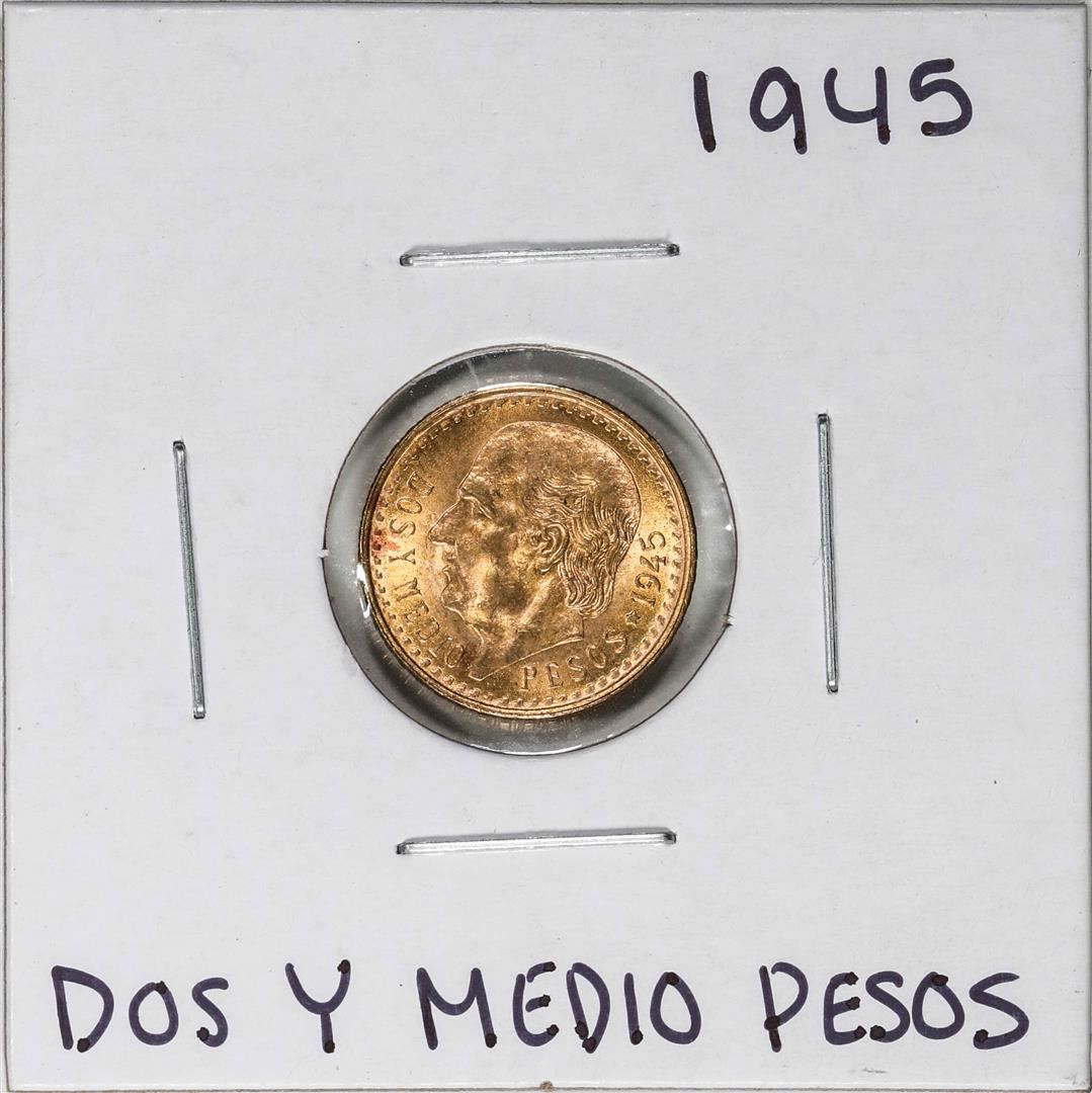 One 1945 Mexico Dos Y Medio Pesos Gold Coin.