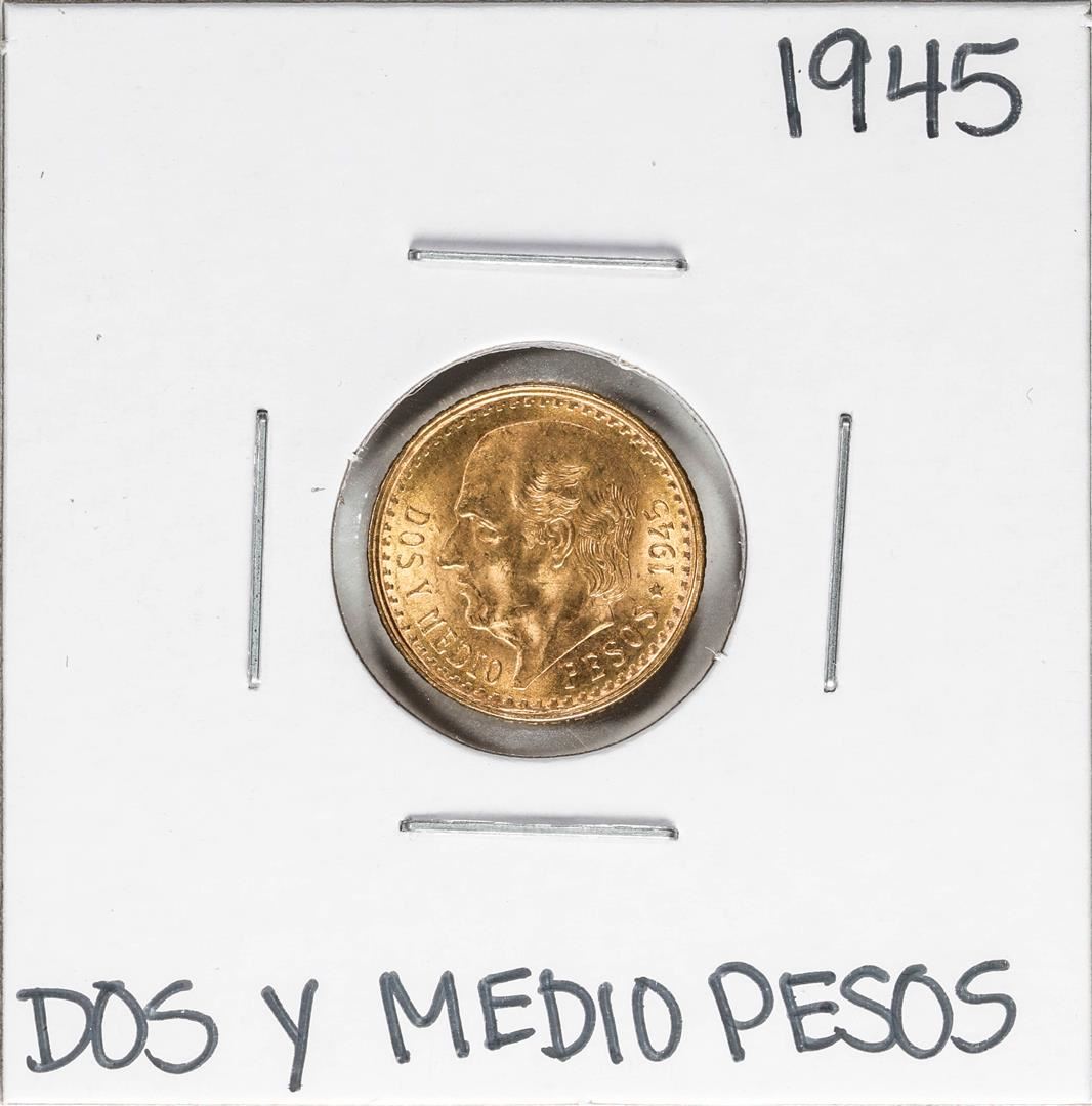 One 1945 Mexico Dos Y Medio Pesos Gold Coin.