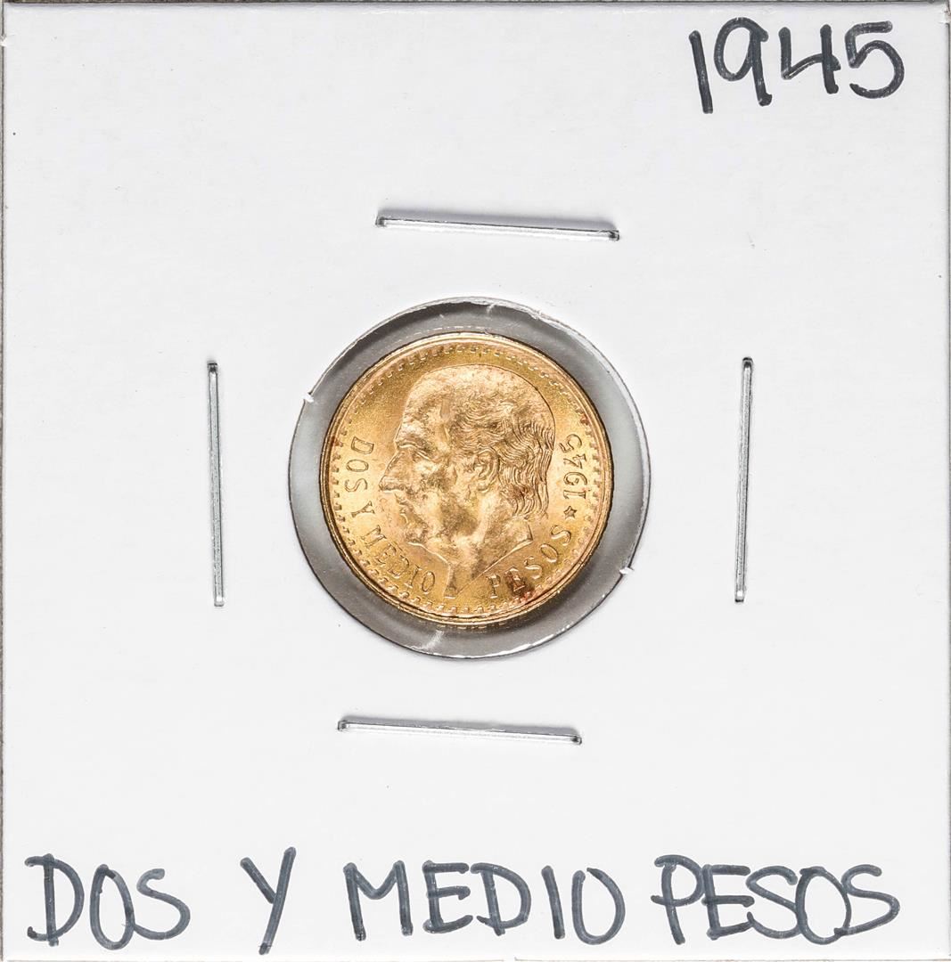 One 1945 Mexico Dos Y Medio Pesos Gold Coin.