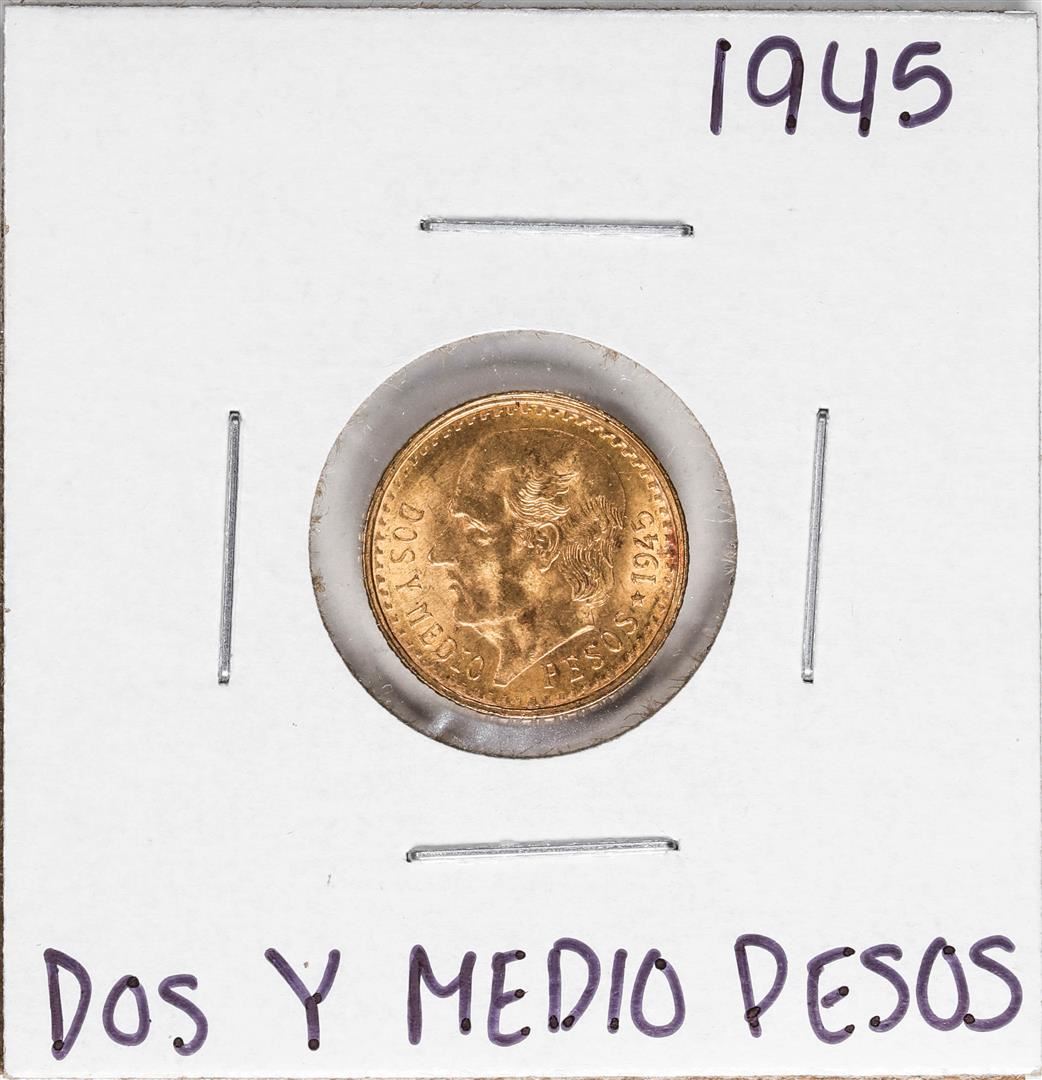 One 1945 Mexico Dos Y Medio Pesos Gold Coin.