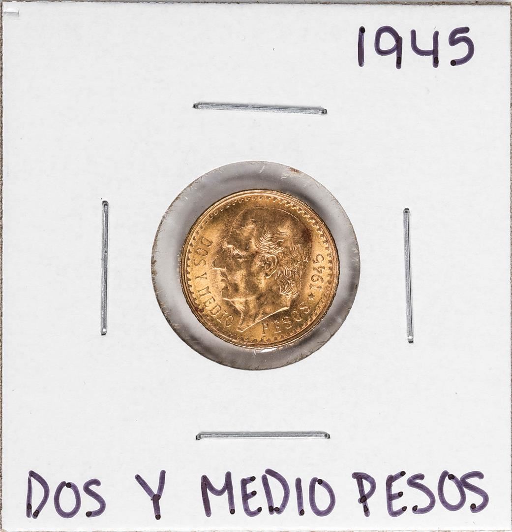 One 1945 Mexico Dos Y Medio Pesos Gold Coin.