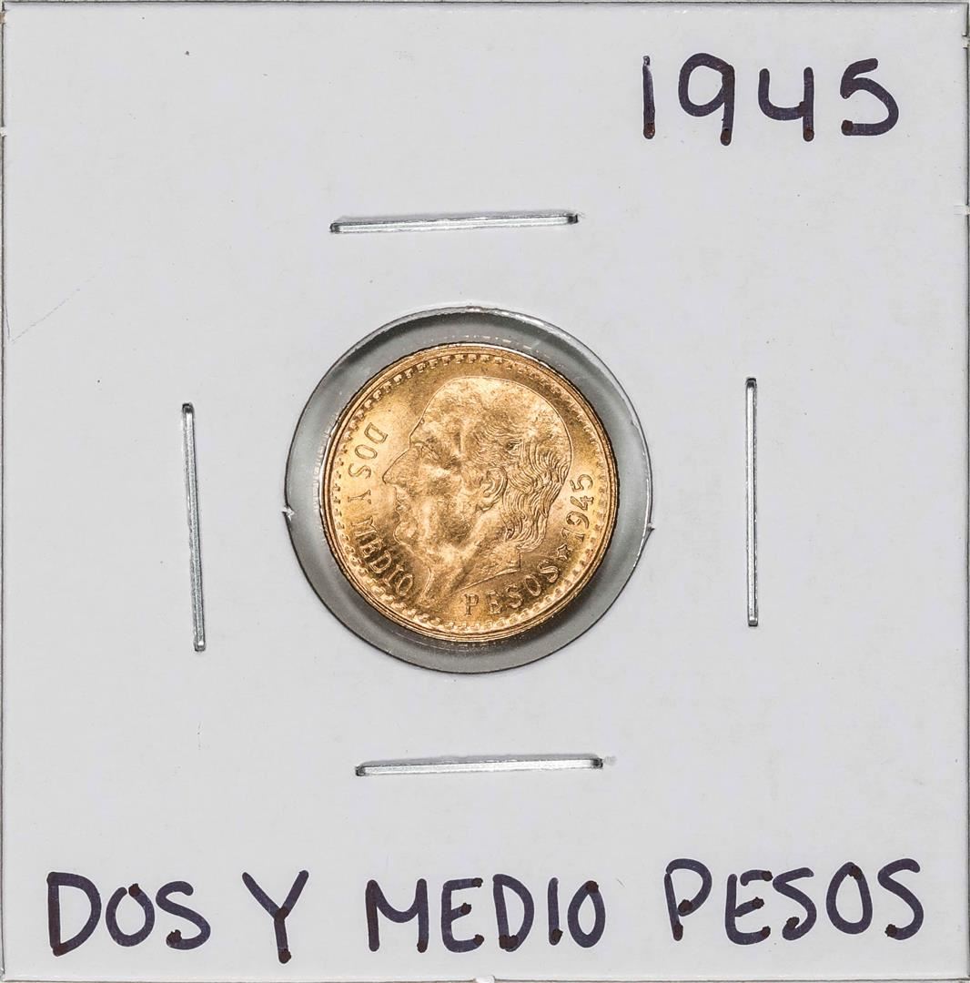 One 1945 Mexico Dos Y Medio Pesos Gold Coin.