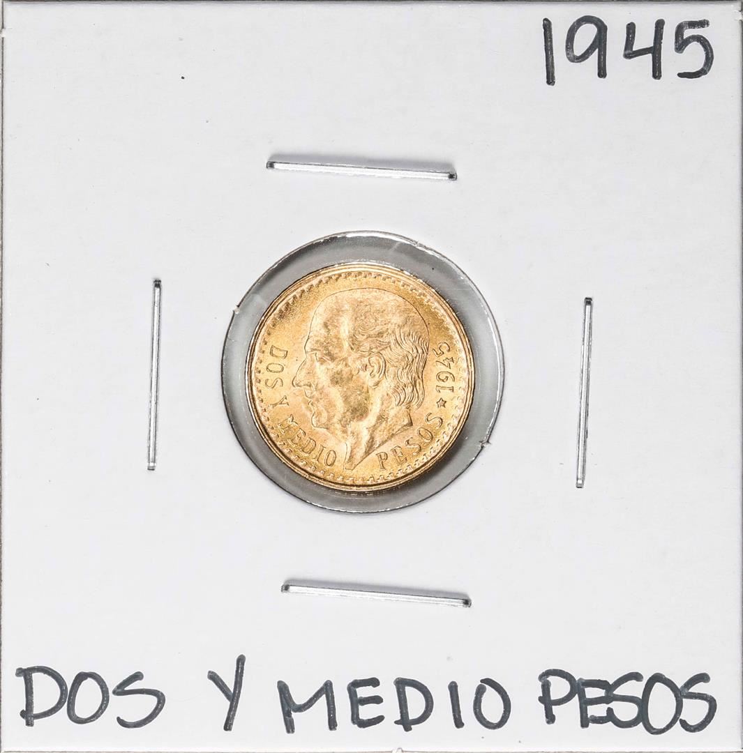 One 1945 Mexico Dos Y Medio Pesos Gold Coin.