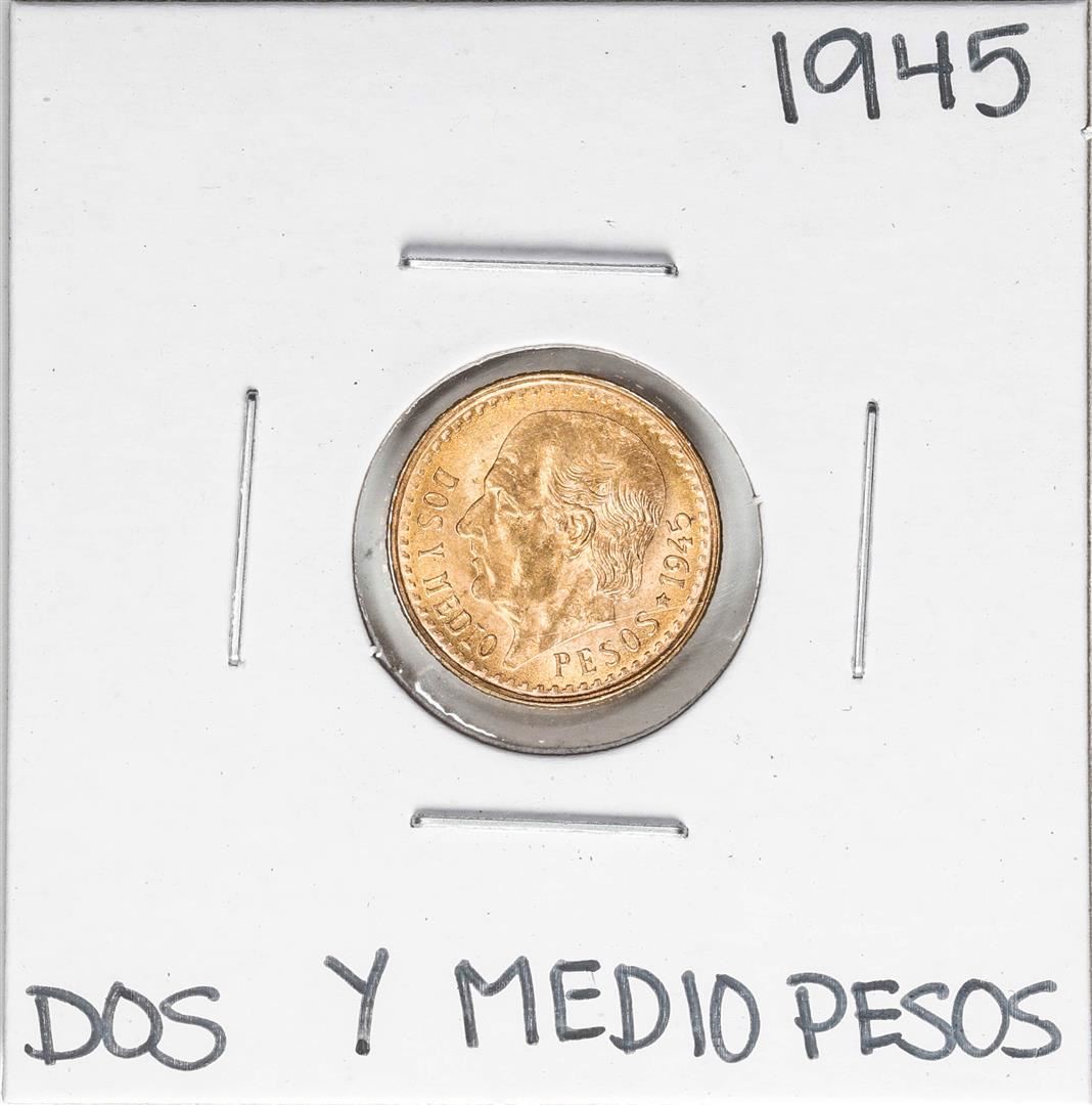 One 1945 Mexico Dos Y Medio Pesos Gold Coin.