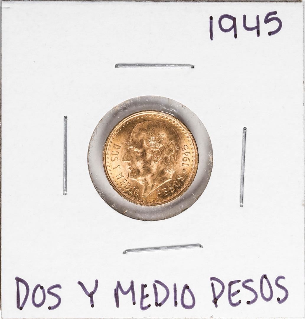 One 1945 Mexico Dos Y Medio Pesos Gold Coin.
