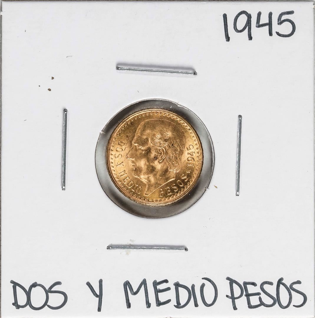 One 1945 Mexico Dos Y Medio Pesos Gold Coin.