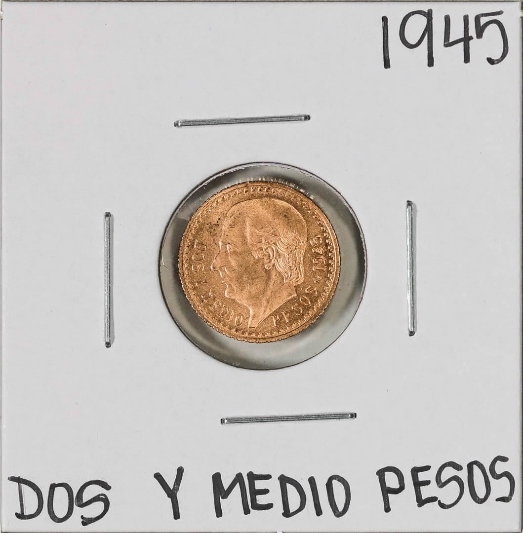 One 1945 Mexico Dos Y Medio Pesos Gold Coin.
