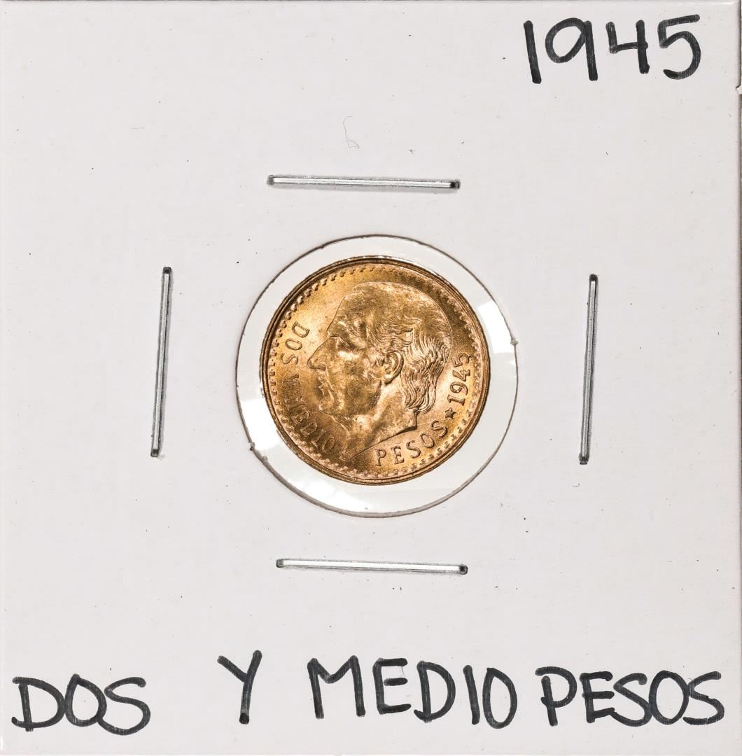 One 1945 Mexico Dos Y Medio Pesos Gold Coin.