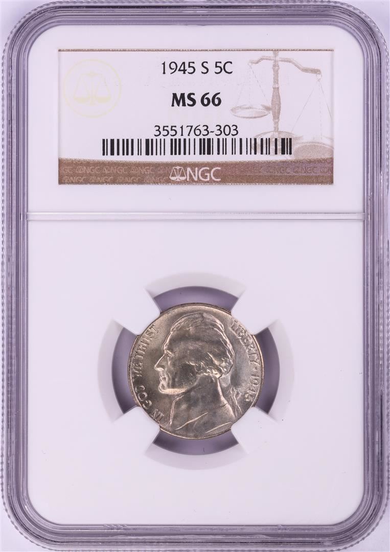 One 1945-S Jefferson Nickel Coin NGC MS66. NGC Certified.