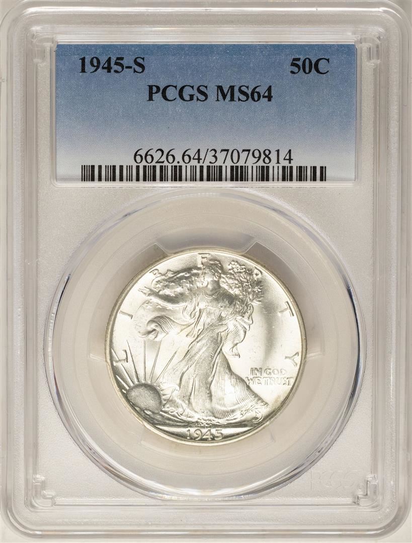One 1945-S Walking Liberty Half Dollar Coin PCGS MS64. PCGS Graded.