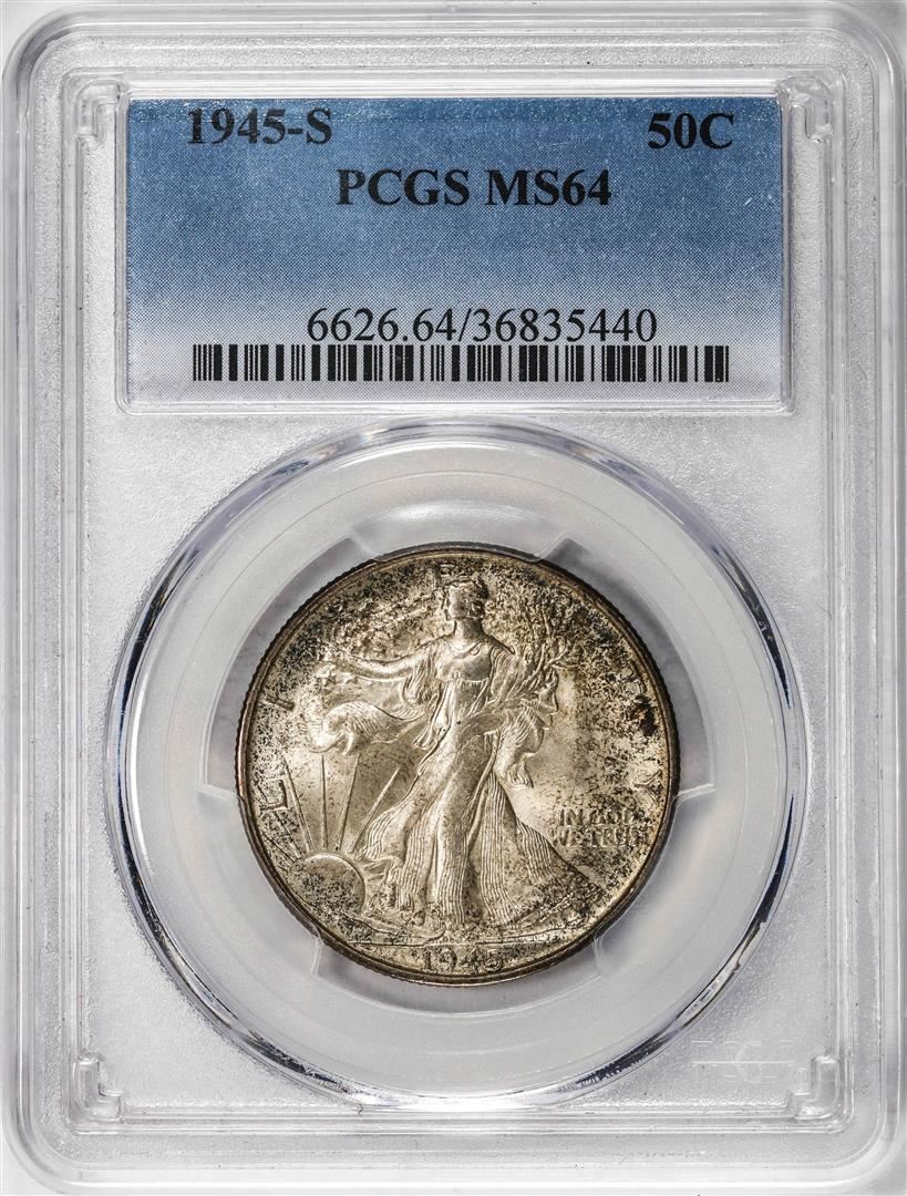 One 1945-S Walking Liberty Half Dollar Coin PCGS MS64. PCGS Graded.