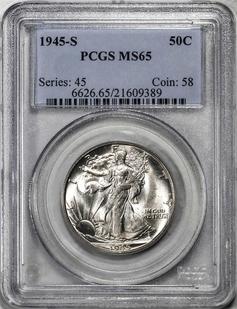 One 1945-S Walking Liberty Half Dollar Coin PCGS MS65. PCGS Graded.