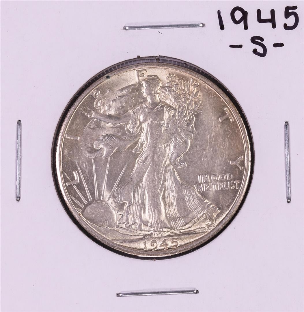 One 1945-S Walking Liberty Half Dollar Coin.