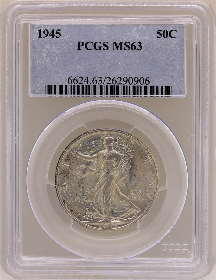 One 1945 Walking Liberty Half Dollar Coin PCGS MS63. PCGS Graded.